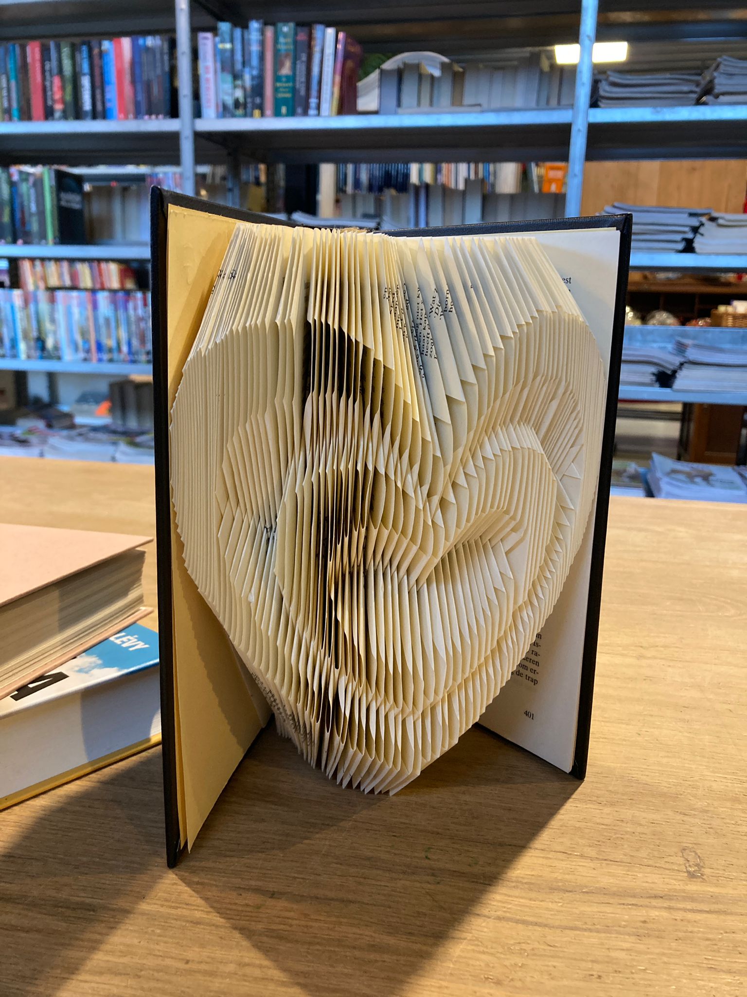 Tijdens deze leuke workshop boekvouwen, die plaatsvindt van 10.00 tot 14.30 uur, leren deelnemers onder begeleiding van enthousiaste vrijwilligers hoe je van een boek een kunstwerk maakt. Je kunt kiezen uit het vouwen van een hartvorm of een vaasvorm.